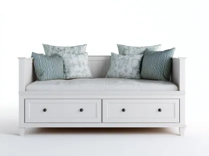 El sofá cama ofrece una superficie amplia que permite utilizarlo tanto como asiento durante el día como zona de descanso por la noche. Su diseño con respaldo lateral aporta apoyo adicional y contribuye a crear un espacio cómodo para relajarse o leer. La estructura inferior incorpora espacio de almacenamiento práctico.