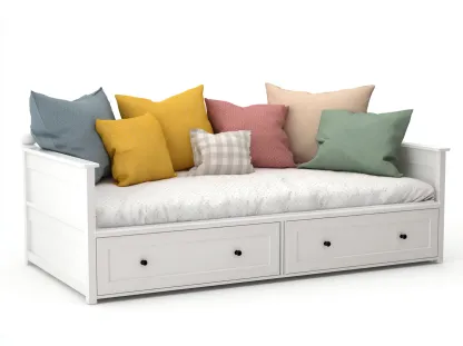 La estructura está fabricada en madera resistente con acabado en color blanco que aporta luminosidad al espacio interior. El diseño sólido proporciona estabilidad y durabilidad para el uso cotidiano. La base incluye cajones integrados que facilitan el almacenamiento de ropa de cama u otros objetos domésticos.